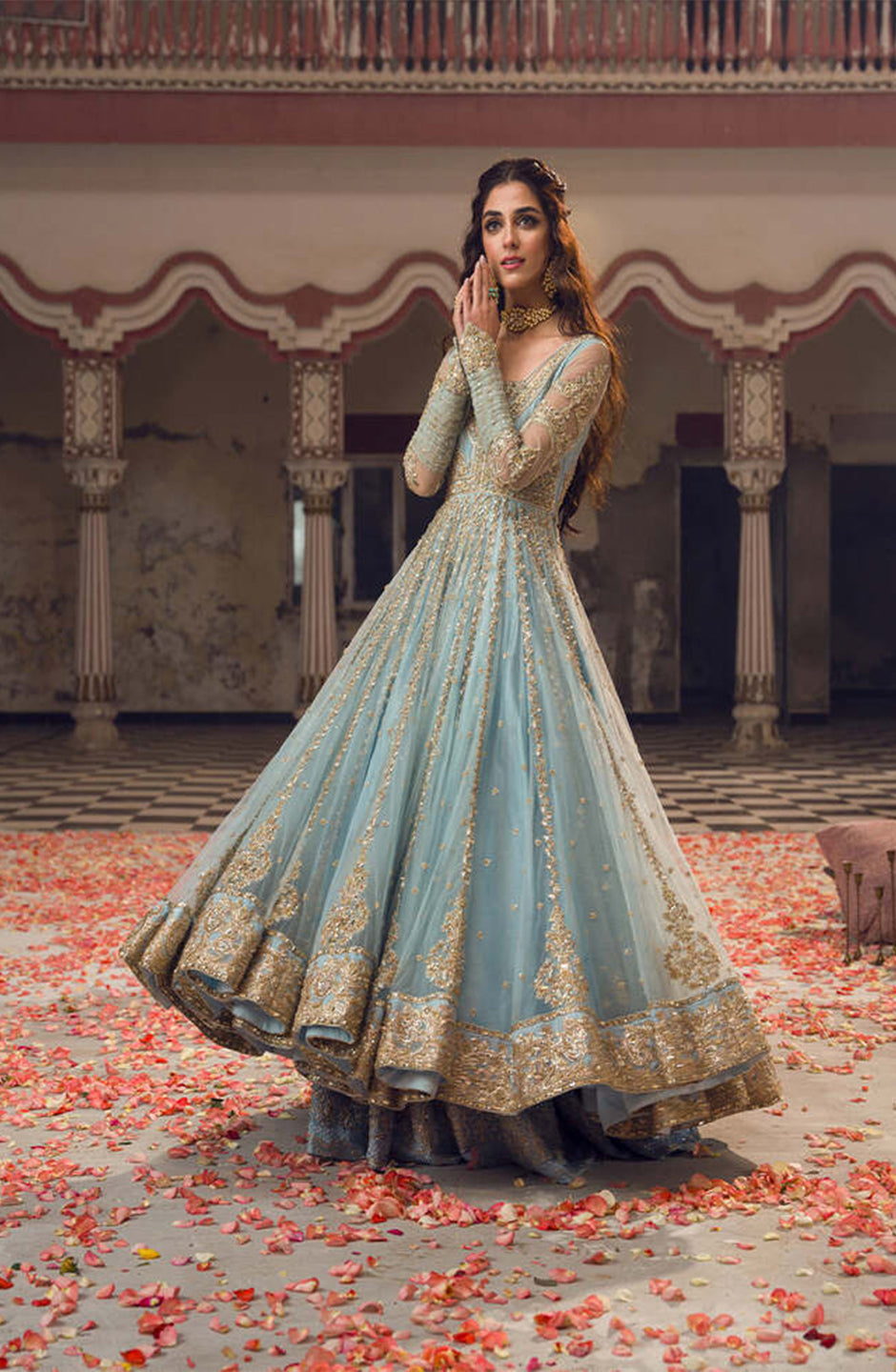•    Heavily hand embellished net pishwas